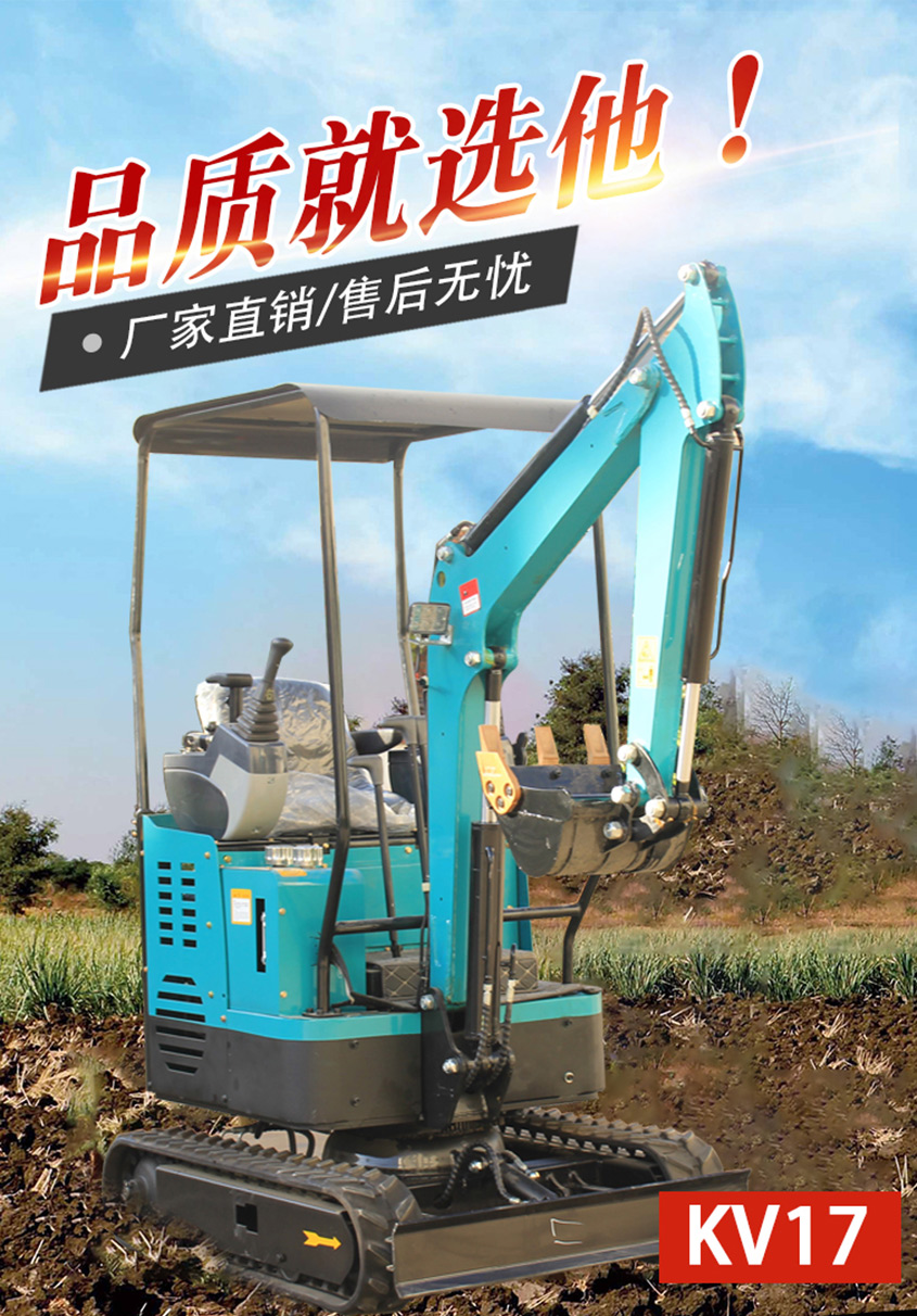KV17小型挖掘機自主設計、外觀漂亮、配置高、性能優越、油耗低、作用范圍廣 ,適合蔬菜大棚的土地疏松,市政府部門的園林綠化、果園苗圃栽樹挖坑,混凝土路面破碎, 砂石料攪拌,空間狹小的施工作業等。適用快換接頭,可選配旋挖鉆、破碎錘、裝載斗、抓具等各種屬具 。降低維護及作業成本,解放勞動力,提高機械化程度,低投資、高回報。